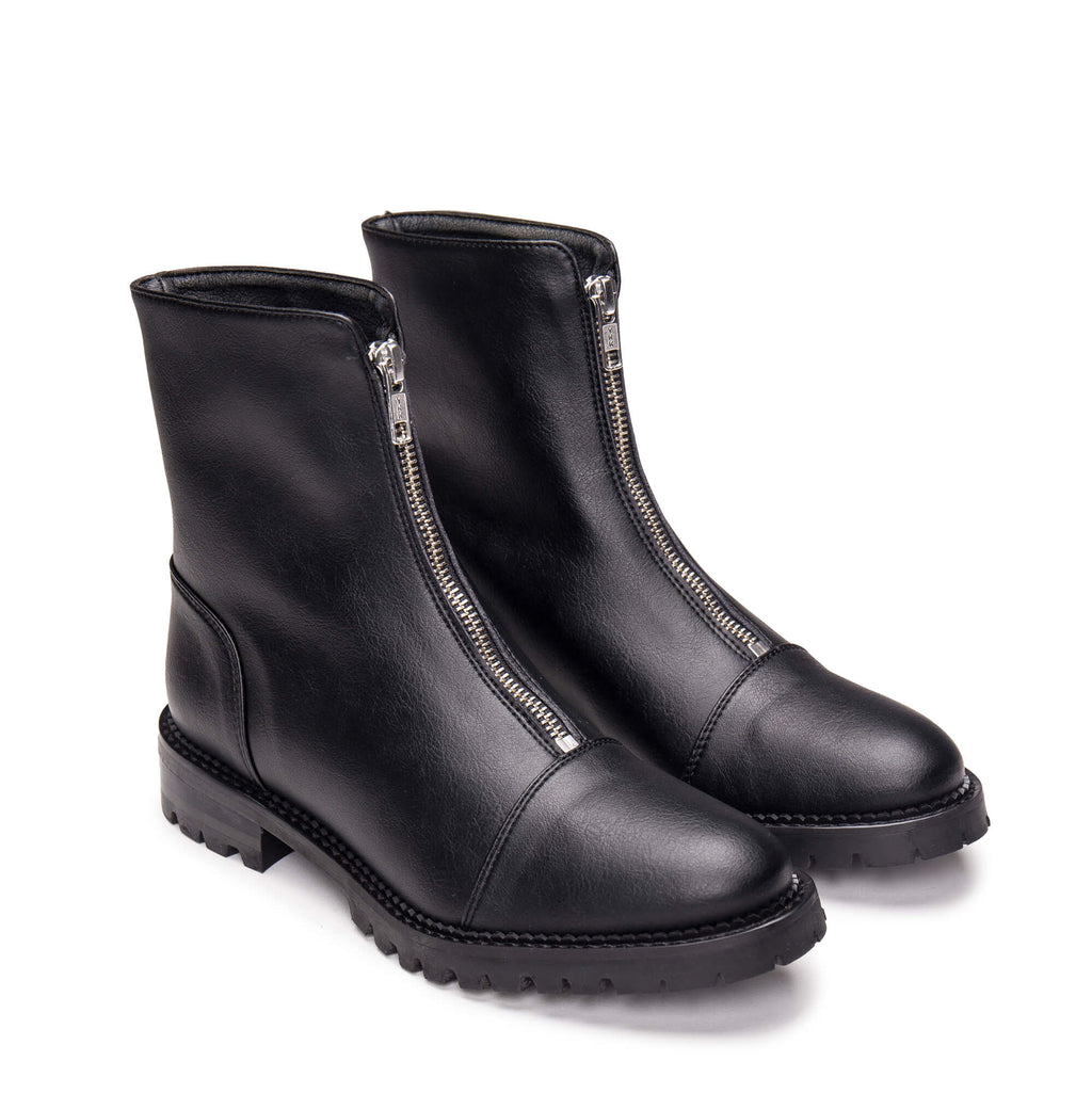 These modern boots feature a statement zipper fastening on the front of the shaft, made with sleek silver metal (nickel-free). They also have exposed sewn edges to bring a lasting and defined style and reinforce the toe cap and heel area, making them a more sturdy yet flexible boot. The upper, the lining and the insole are hypoallergenic and free from dangerous environmental toxins. The boots are breathable, able to avoid foot sweat and suffocation, and are antibacterial and antimicrobial, which helps to prevent the development of odours. They feature a moisture-wicking footbed padded with EVA to provide arch support, and along with the lining attributes, can be considered a flexible model which will prevent blisters.