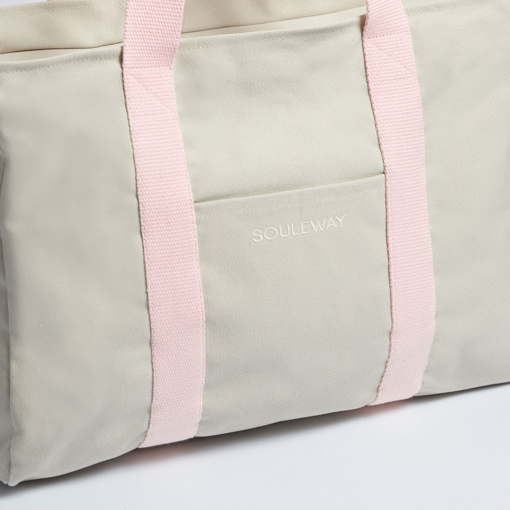 Natural Cotton Canvas Yoga Tote | Sand & Pink By Souleway