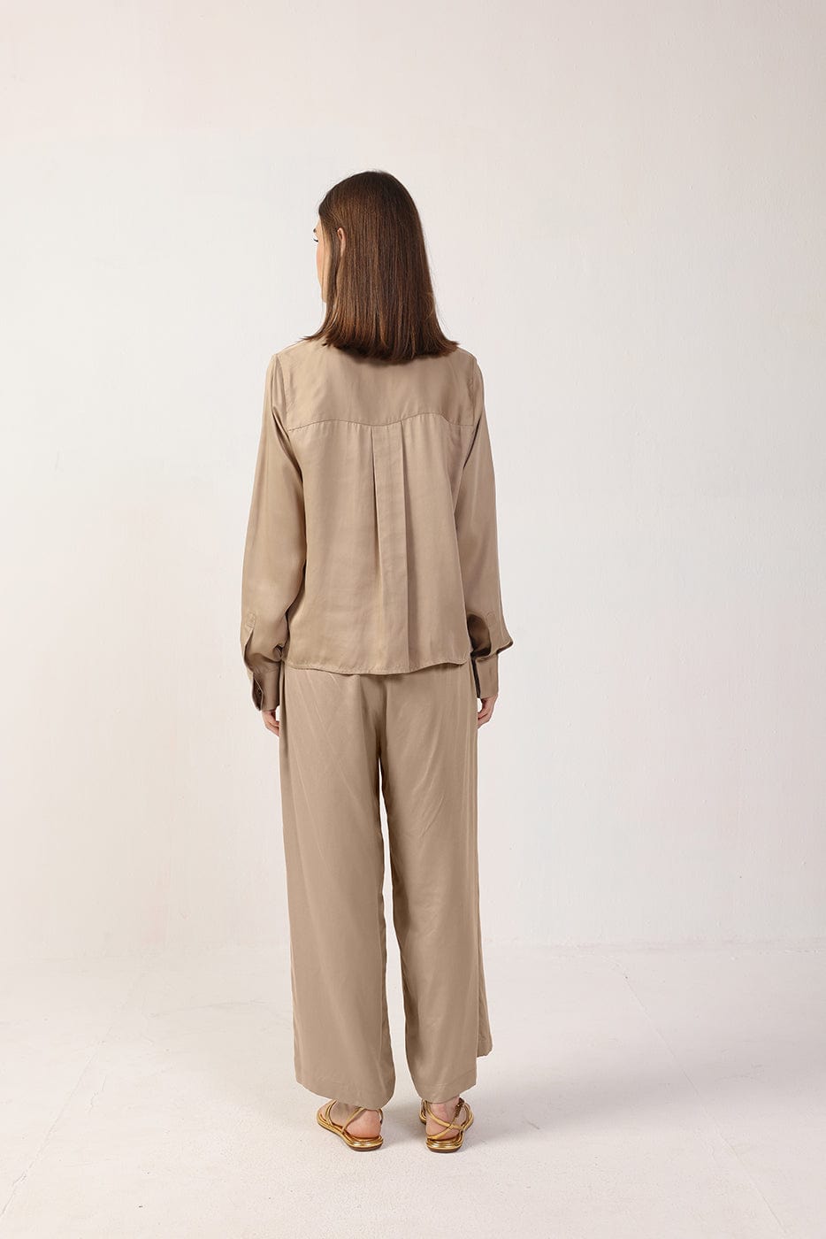 An elegant long sleeve blouse that's perfect for warm weather. Featuring hidden buttons and collarless neckline. Fabricated with our signature, breathable TENCEL™ fabric, this shirt will keep you warm even during the coldest times of the year.