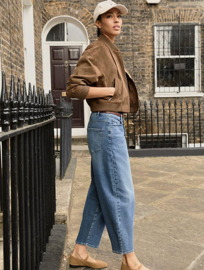 Discover Nixi - our newest and hugely popular jeans style - in a vintage wash. This covetable shape is reminiscent of a horseshoe or barrel as it curves out from the hips for a wider knee before tapering in at the ankle. If you like roomy, cropped denim, then give Nixi a go with a neat-fitting top. We love this distinctive and contemporary silhouette and have made it even more comfortable by adding an elastic panel to the back of the waistband.