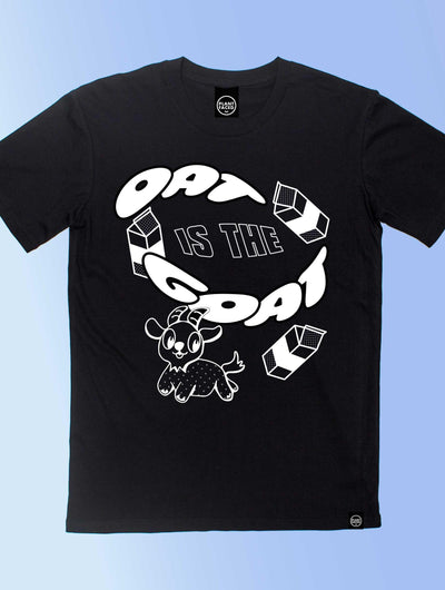 Because oat is the G.O.A.T. (stands for "Greatest Of All Time!"), and now the GOAT is on your tee, too. This design features a cheeky cartoon goat surrounded by bouncing oat milk cartons and chunky bubble type that says it all, for all our oat loving friends in the know☺️