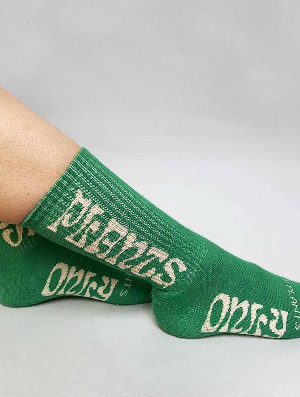 Super soft eco cotton sports socks with ONLY PLANTS / PLANTS ONLY motif on each side and EAT PLANTS on toe, comes in 5 excellent colours