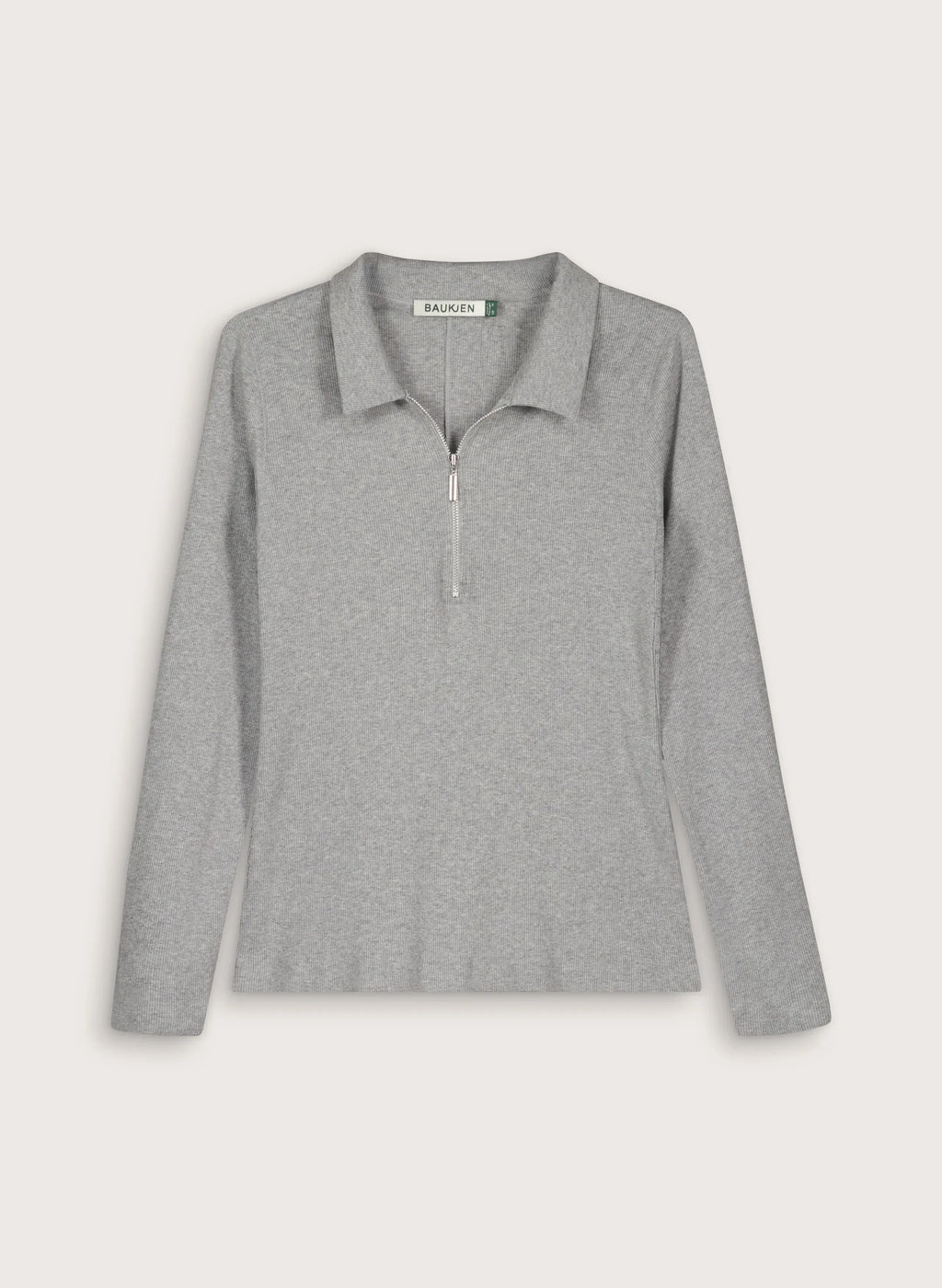 Great for layering under jumpers or jackets - or simply worn on its own, our bestselling Organic Zip Collar Top is brilliantly versatile. In Grey Marl, it strikes an effortless balance between smart and casual thanks to its neat collar and half-zip opening. The soft organic cotton rib fabric is a joy to wear and easy to wash, making it comfortable and wonderfully low-maintenance.