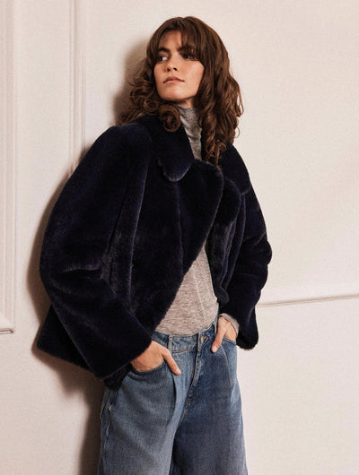 Crafted from a faux fur finish outer and plush faux sude on the inside, Issy London have given the classic peacoat a cosy twist for colder seasons. Falling to the hip and featuring wide lapels side pockets and double breasted front with button fastening adds a tailored element to the style. Pairs perfectly with a casual look aswell as more smarter vibe
