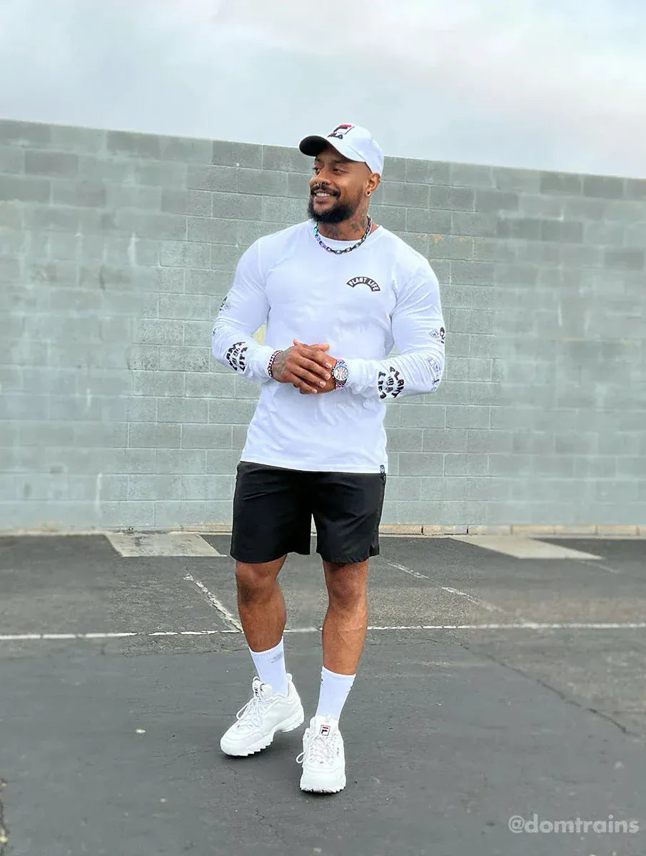 A lightweight staple with heavyweight energy. From the kale-chomping skull to the scribbly sleeve icons, this piece throws a punch of plant pride with every step you take. It's not just a long sleeve tee - it’s a walking billboard for your values.