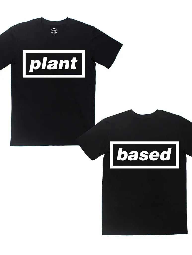 Black tee with “PLANT” on the front & “BASED” on the back - bold, clean and unapologetic