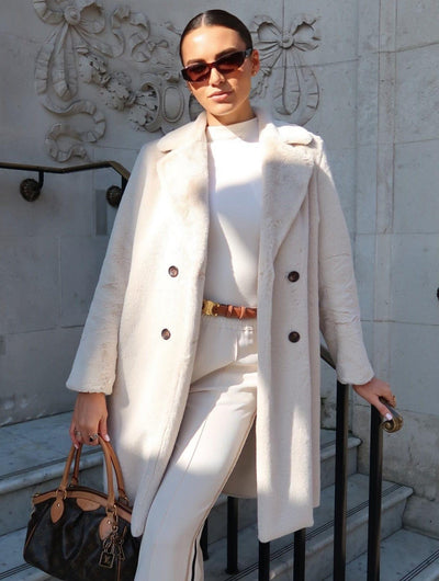 Introducing Rosie, with her prominent collar and lapels to create an elevated silhouette, this lighter weight faux fur trench and outerwear piece has an instantly smart feel with a soft faux fur finish. It's double-breasted, a nod to traditional tailoring, and has a mock-horn button fastening at the front. Wear over chic workwear, athleisure wear or jeans and cashmere knits come the weekend.