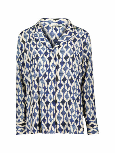Baukjen's favourite print of the season comes in this pyjama-inspired shirt. Crafted in responsibly sourced crepe, it is cut for a relaxed, easy fit and simply buttons through. The sort of piece you can effortlessly dress up or down, its geo pattern is echoed in the Elin Trousers to create a punchy, print-centric co-ord.