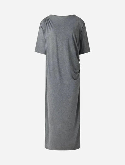 The SAHARA Modal Dress in Charcoal combines sustainability and comfort with its 95% Modal and 5% Spandex fabric, crafted in a Vega, Sedex-audited factory. The supersoft finish feels gentle on the skin, while ruching at the neck and waist creates a flattering drape that enhances your natural shape. Designed with ankle length and elbow-length wide sleeves, this dress offers relaxed elegance with an organic, down-to-earth vibe. Finished with a Lenzing certified swingtag, it’s a conscious choice for those who value both style and ethical production.