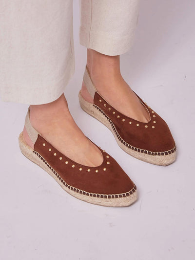 Cognac-coloured studded sandals: super elegant, super comfortable and very wearable. A must-have for spring.