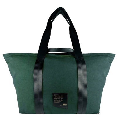 Strapped in upcycled seat belts and ready to carry everything you need. Can be hand held, carried over the shoulder or worn as a backpack.