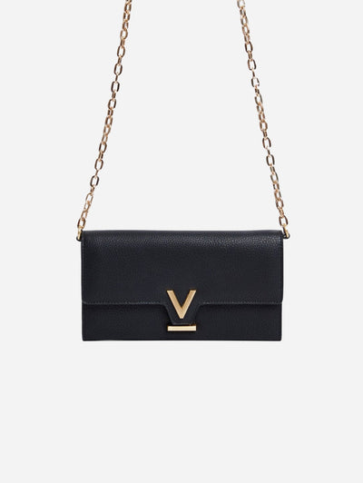 The purse features a brushed gold V magnetic closure, adding a sophisticated touch, while the removable chain offers versatility—wear it as a crossbody during the day or carry it as a sleek clutch for evening occasions.