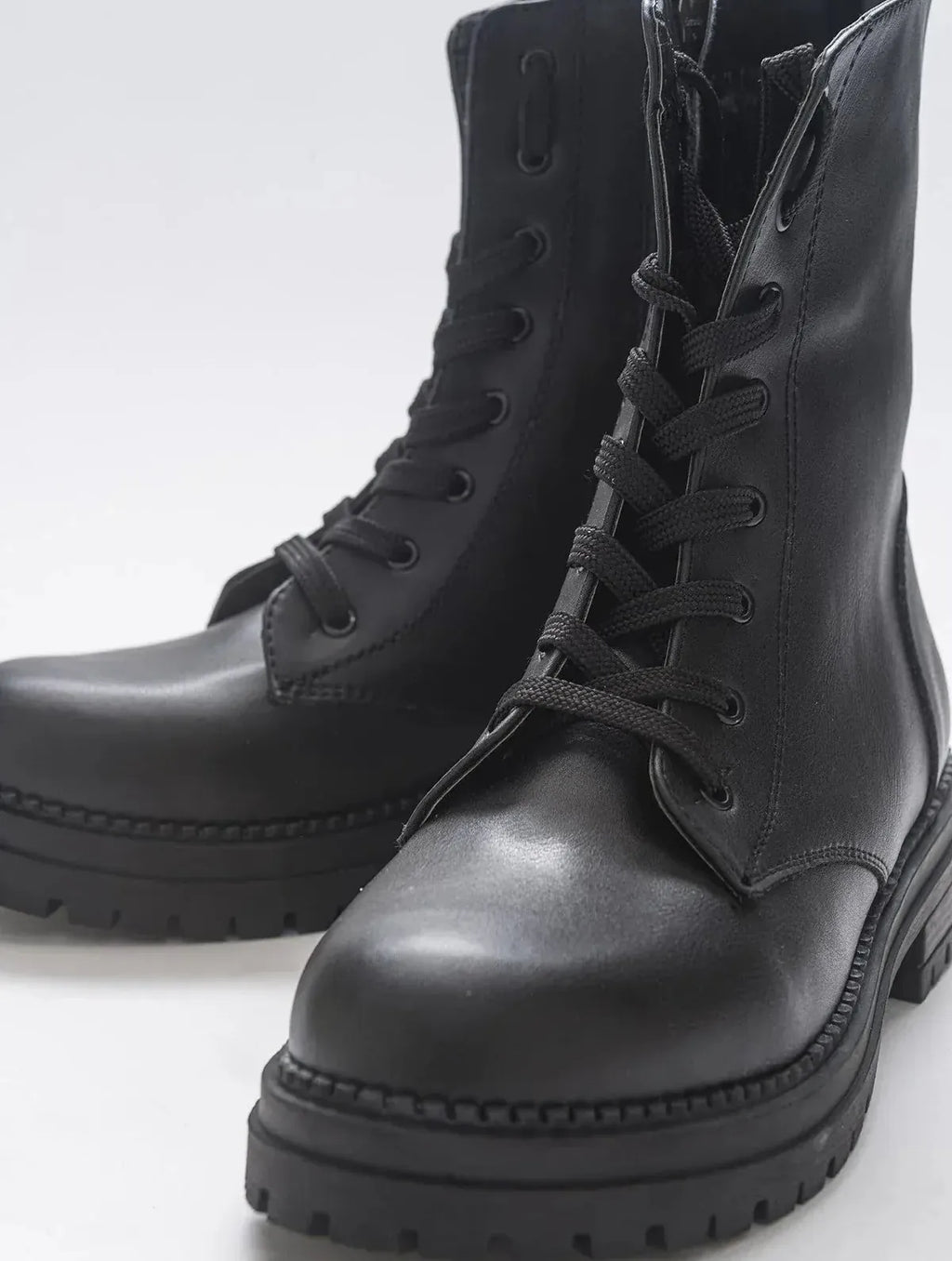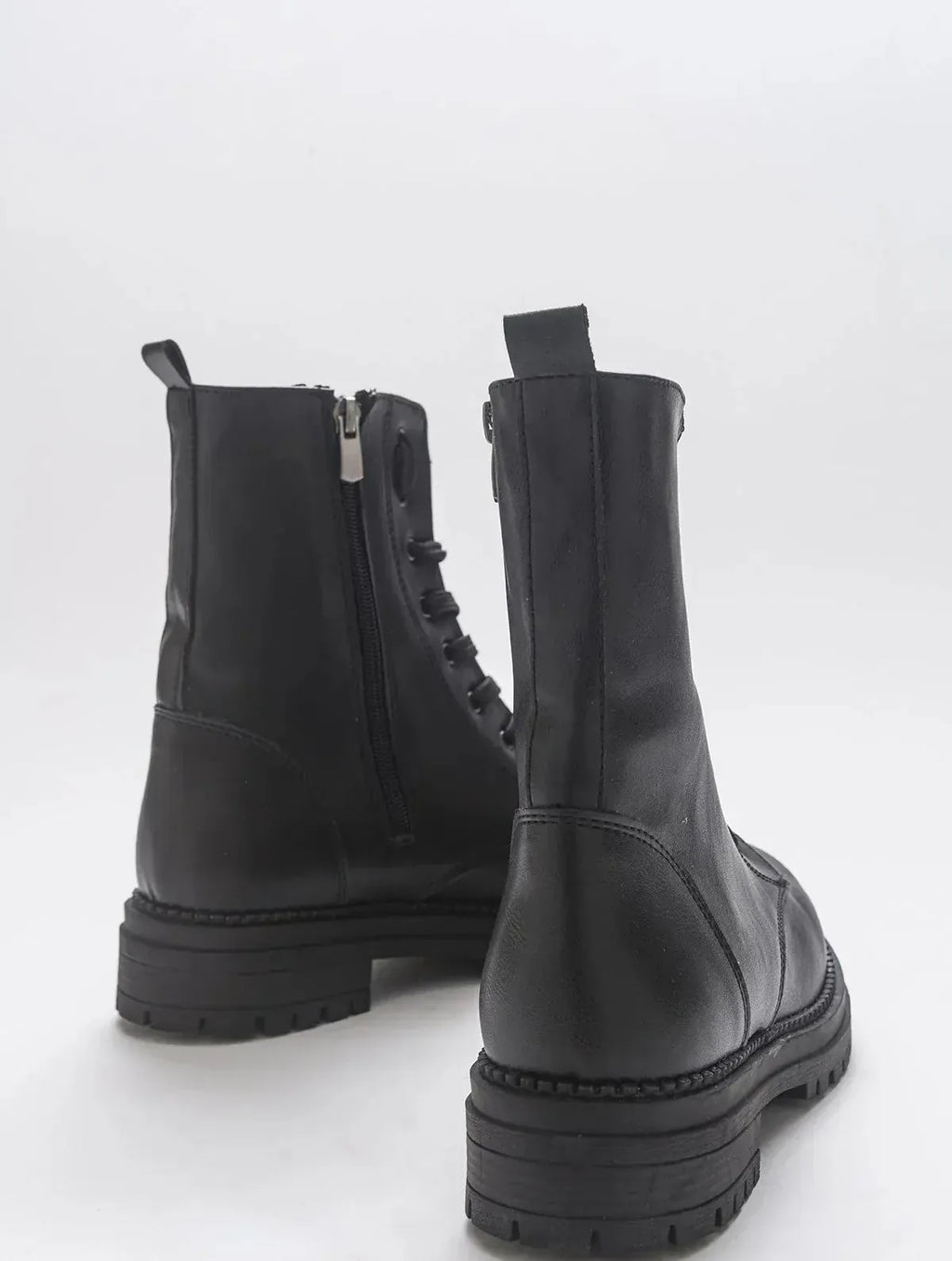 A sleek, minimalist boot crafted from faux leather with a warm lining, designed for everyday wear. 1.6" heel, 3.5" shaft (size 7US) 11.4" circumference (size 7US); slip-on design with elastic gore insets