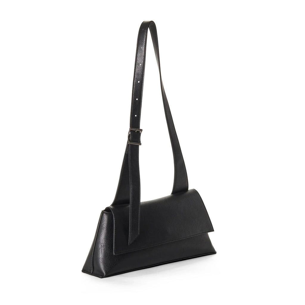 The SOFIA Black Baguette Shoulder Bag is a classic reimagined for modern life. Designed in Canada and crafted from certified recycled materials, this vegan bag captures the sleek silhouette of the iconic baguette style with added everyday function.
