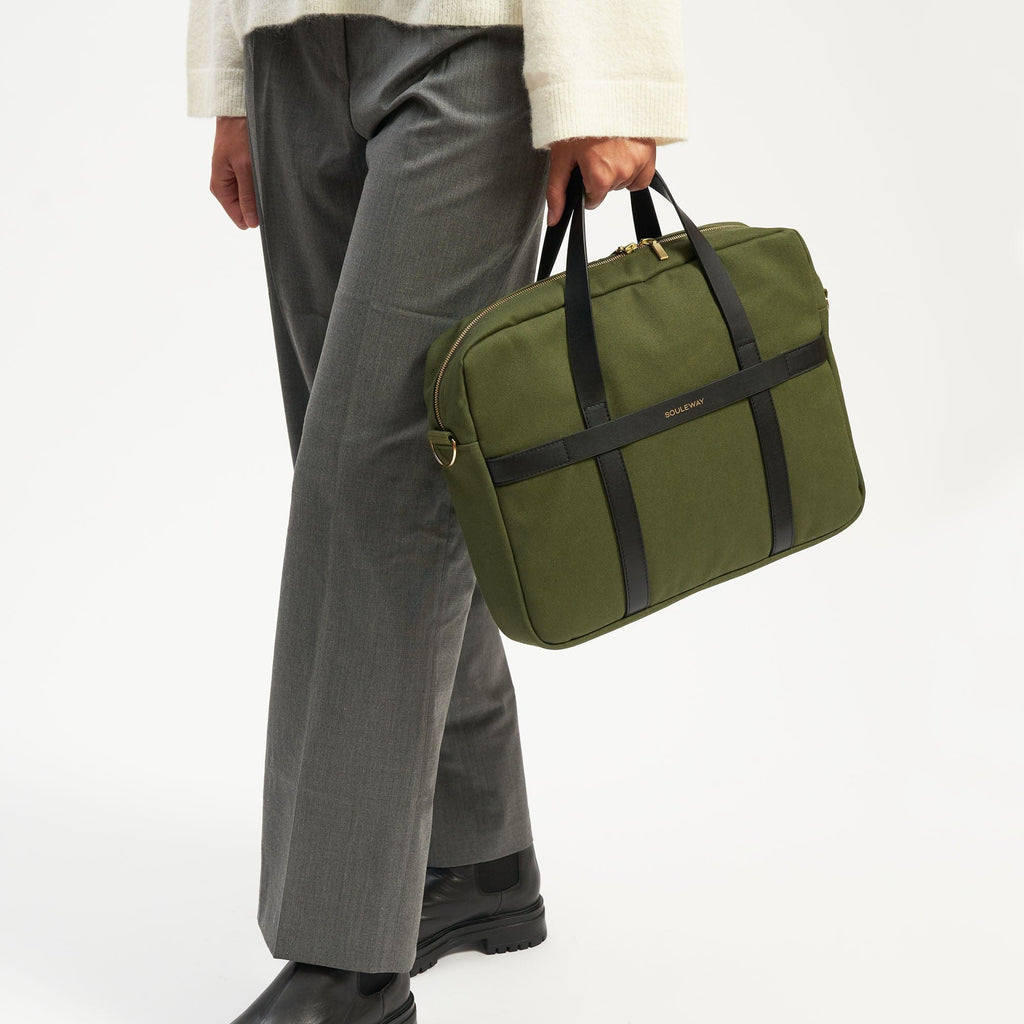 Natural Cotton Canvas Laptop Bag | Dark Olive By Souleway