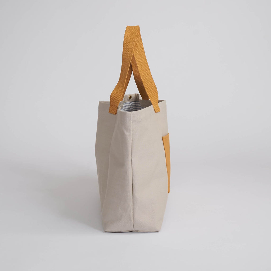 The shopper made of water-repellent canvas impresses with a classic, timeless design and a high-quality workmanship. Through an integrated push button, the bag is designed and largely changed and is perfect for a trip to the market, the next bigger purchase or a day in the city. The shopper is vegan has an outer pocket and a functional interior.