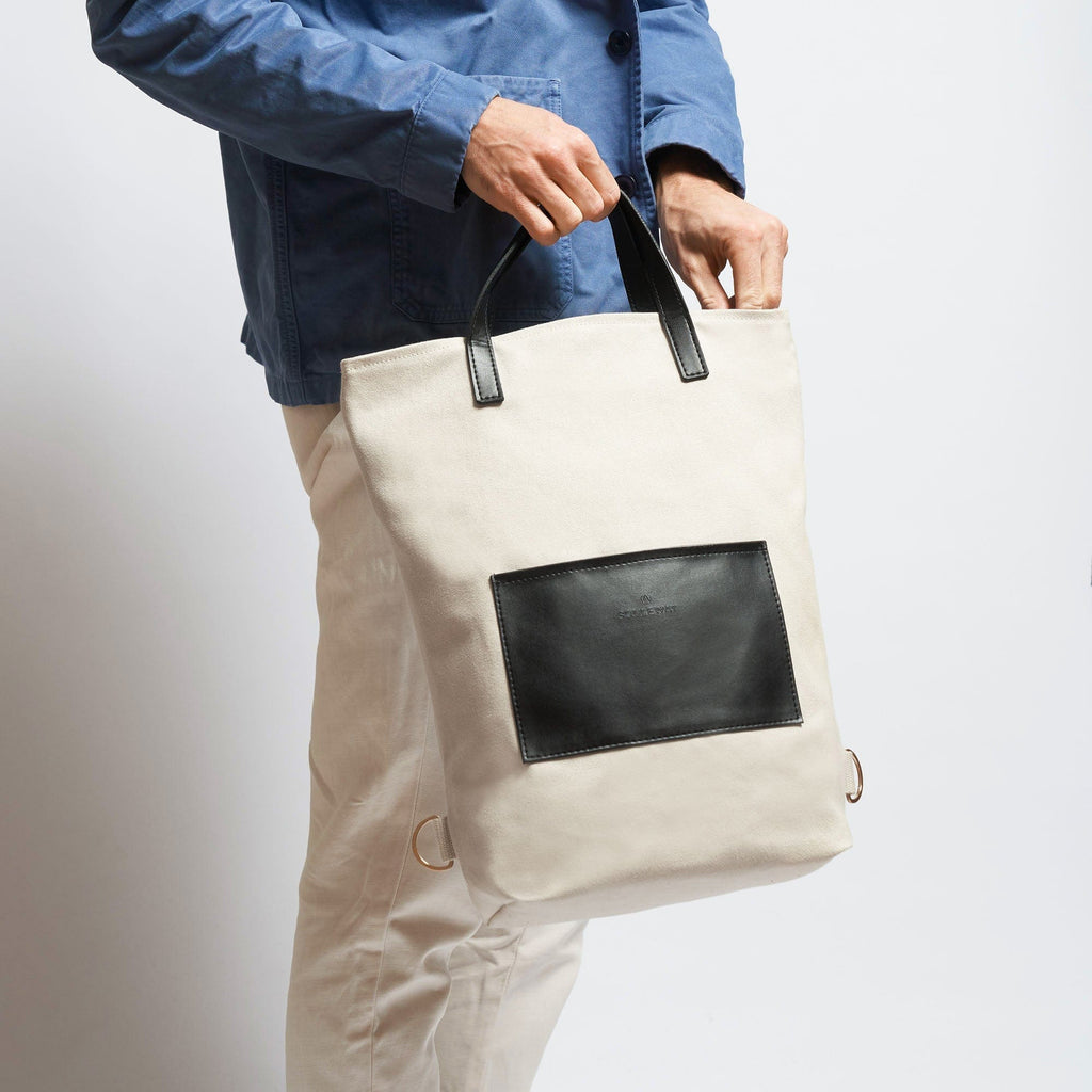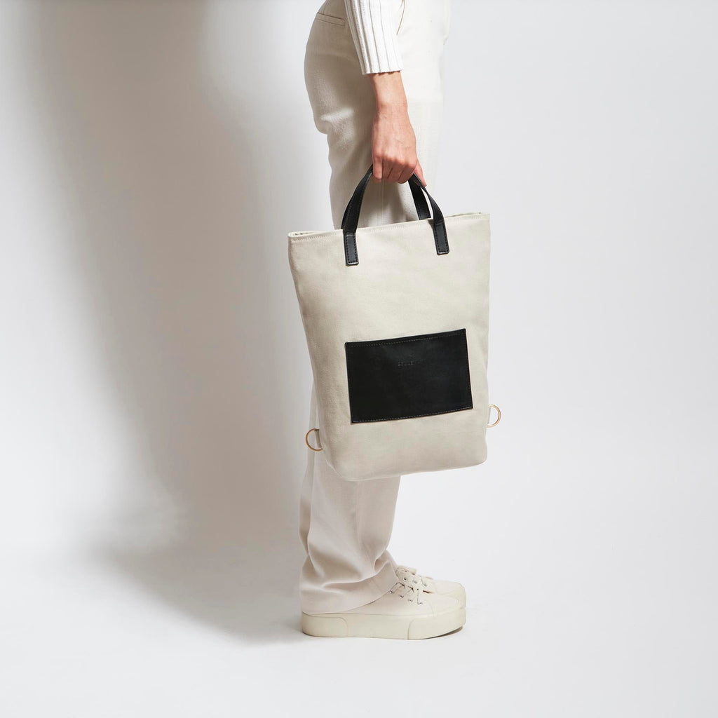 The Totepack is the perfect combination of functionality and style. Made from canvas and Oleatex, it offers a durable and sustainable alternative. The stowable shoulder straps allow you to wear this backpack/bag combination as either a backpack or a tote, depending on your needs. With a 14-inch laptop compartment, the Totepack is ideal for work, university or leisure activities. The minimalist and stylish design will go with any outfit.