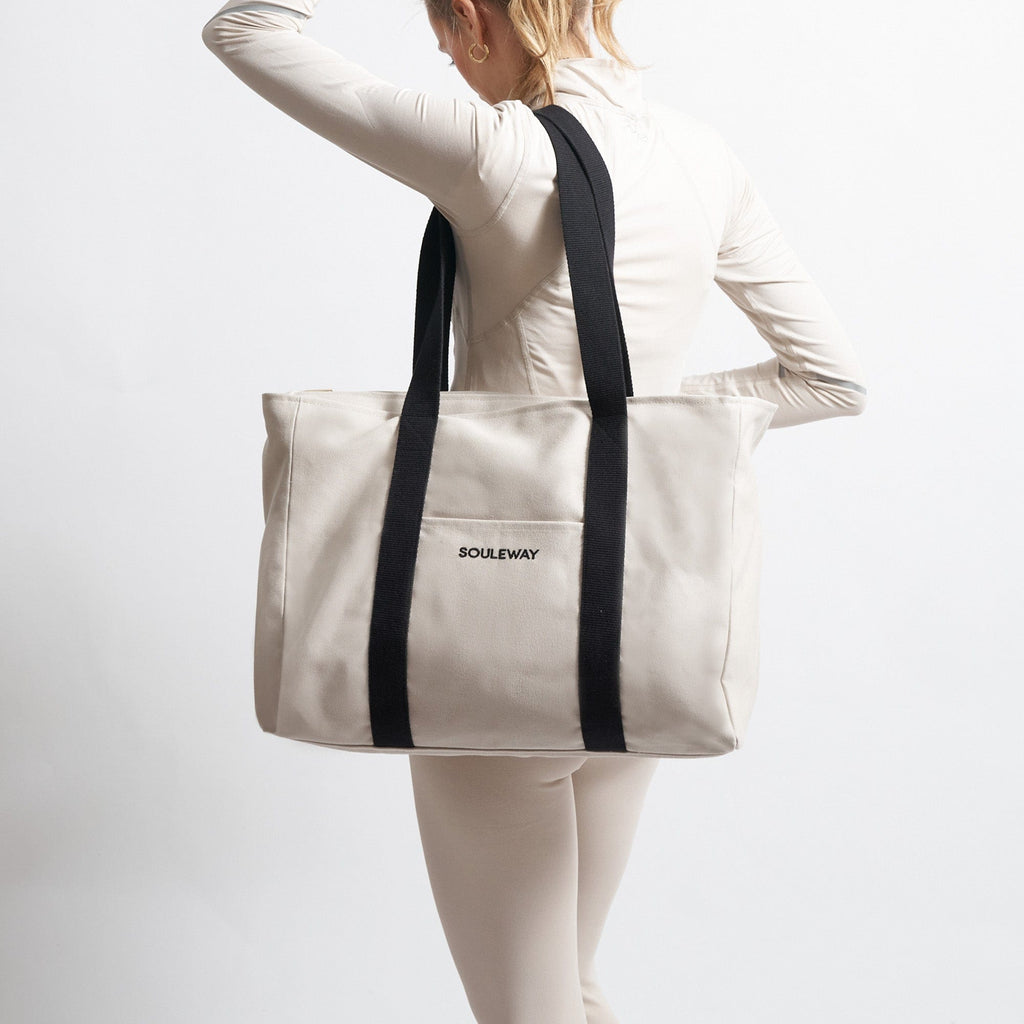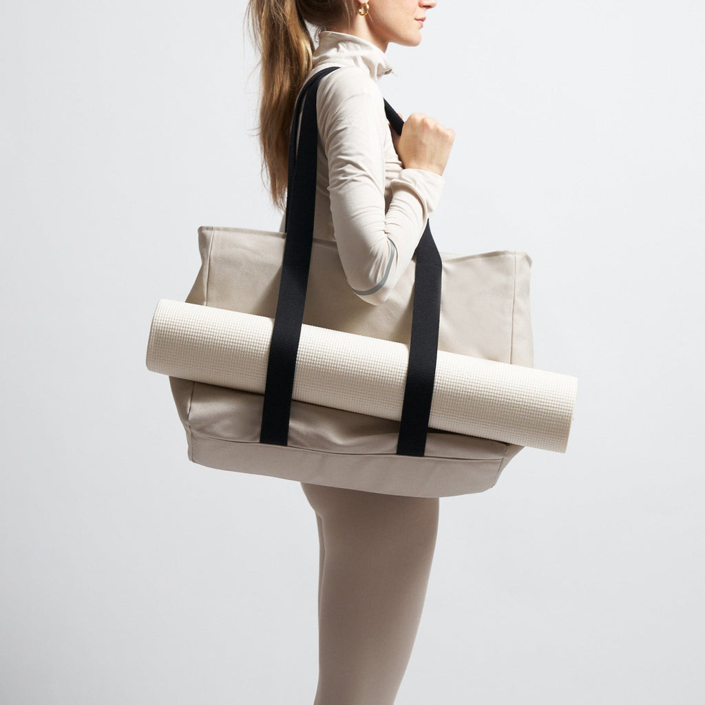 Natural Cotton Canvas Yoga Tote | Sand & Black By Souleway