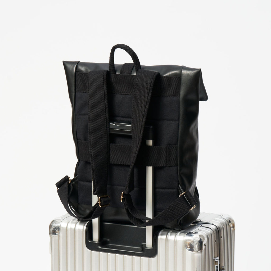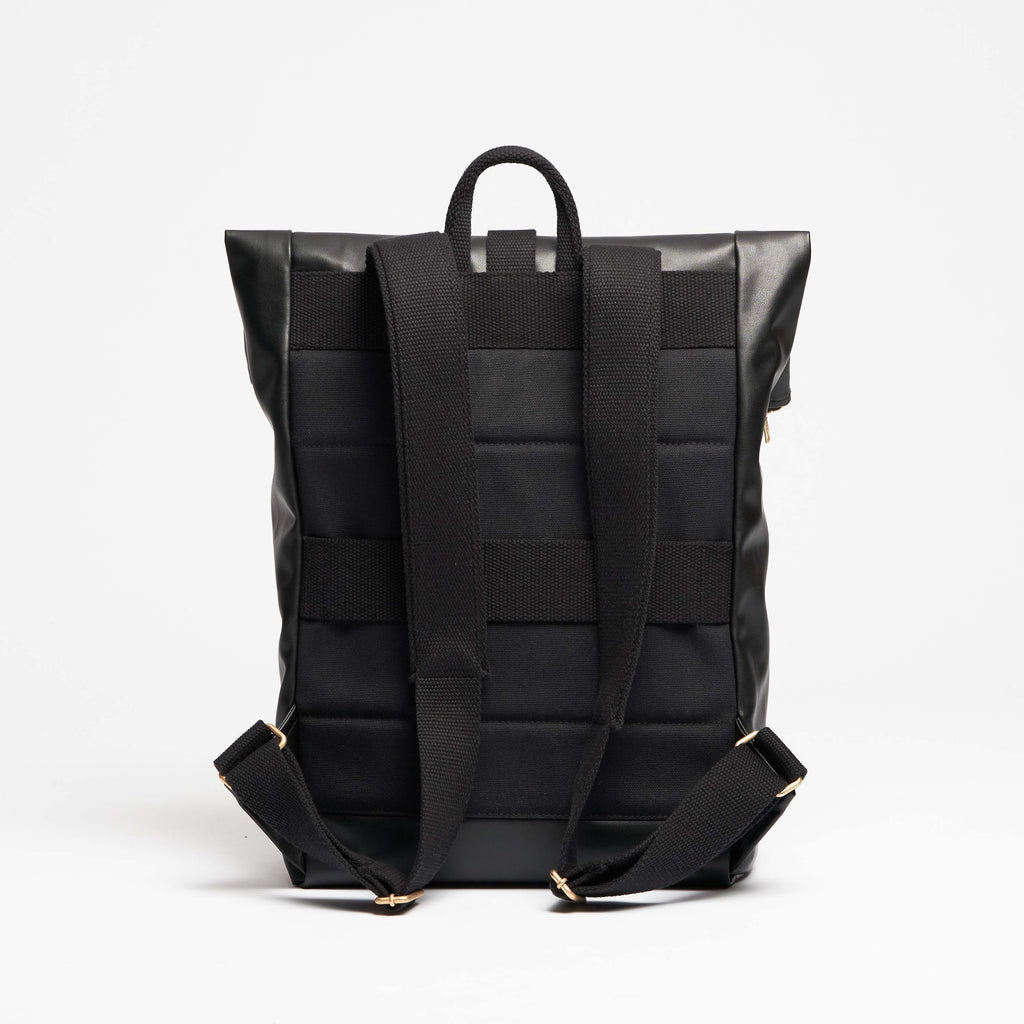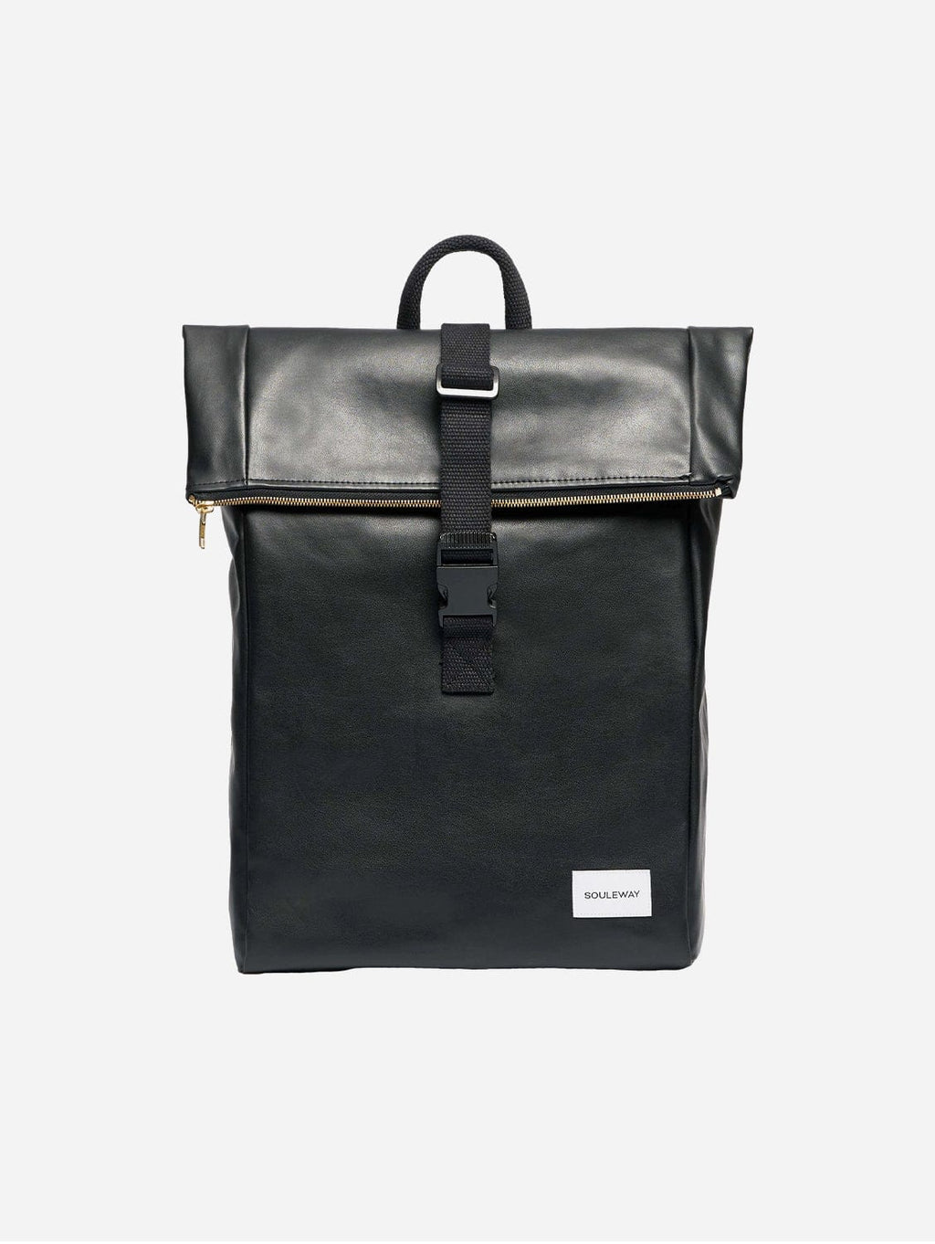 Oleatex Vegan Olive Leather Foldtop Backpack | Night Black By Souleway