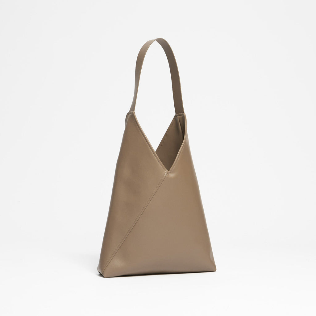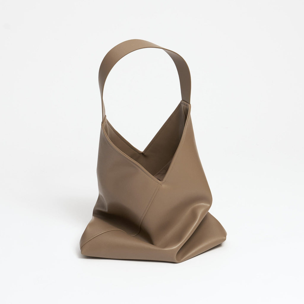 The trapezoidal Origami Bag impresses with its timeless look and high-quality workmanship. The bag is made from the vegan leather alternative Oleatex. Oleatex is obtained from the remains of the olive industry and offers all the visual and qualitative features of leather made from animal components. There is a closable pocket inside the bag.
