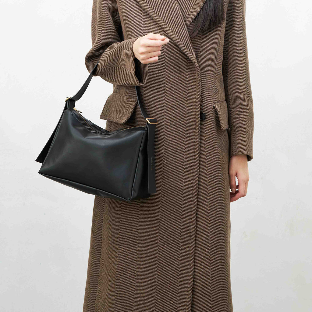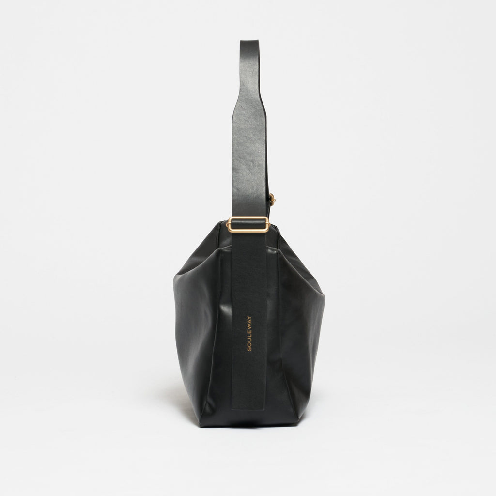 Oleatex Vegan Olive Leather Slouchy Shoulder Bag | Night Black By Souleway