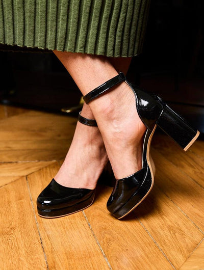 The signature moon buckle, a flared heel and a platform for maximum comfort... Minuit sure Terre present to you in a Sigh the trendiest heeled pumps of the year!