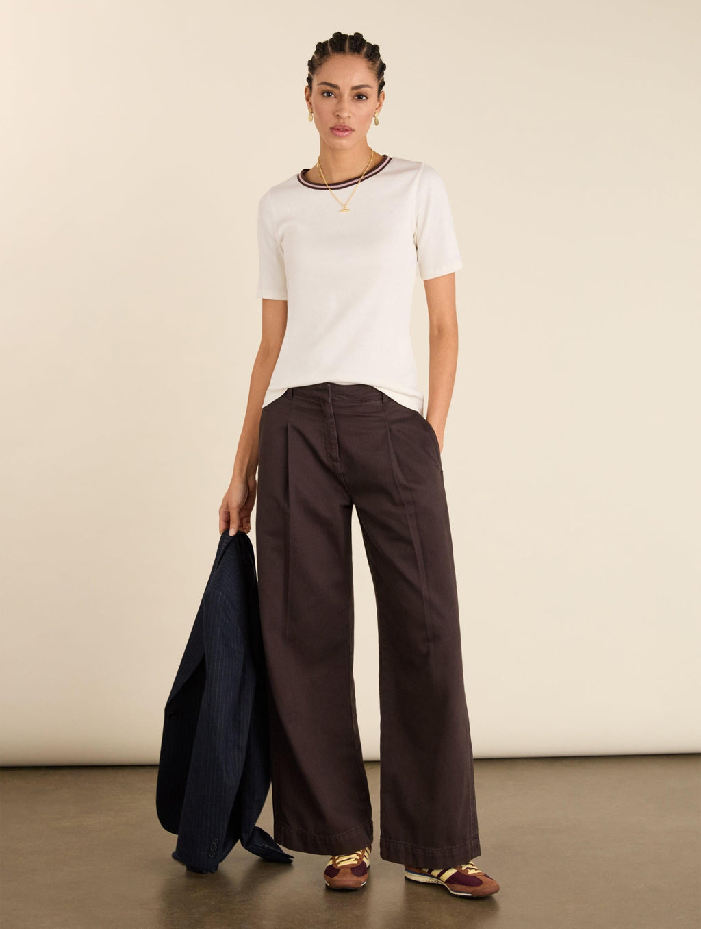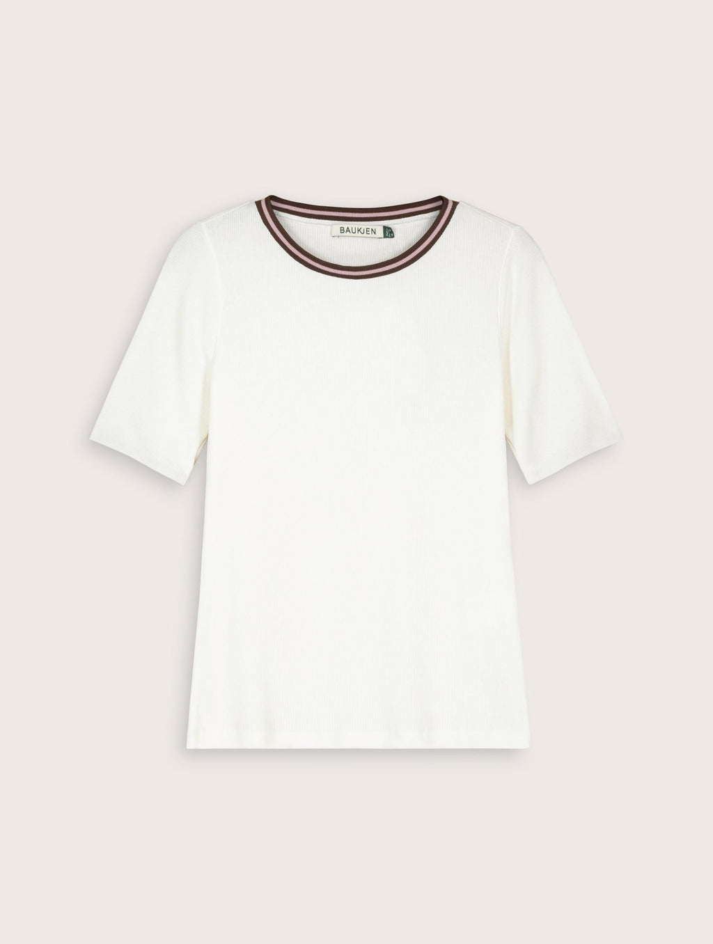 It’s all in the detail with the Sylvie Tee: a neat crew neck top with sleeves which finish near the elbow. It’s the subtle striped edging in pink and brown around the collar that adds a nod to the retro sports trend. Crafted in soft, organic cotton rib jersey, it’s cut for a slim fit. A dependable staple with just enough difference. Sylvie can be worn on its own but is equally handy for layering.
