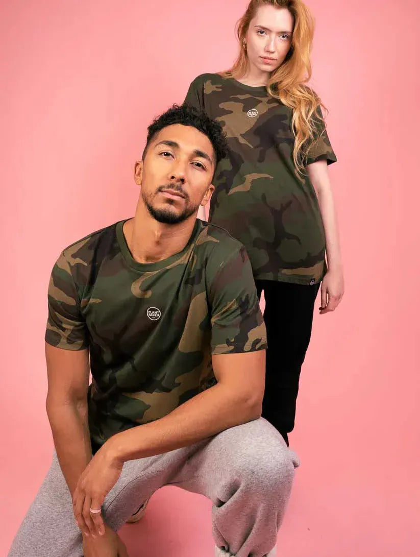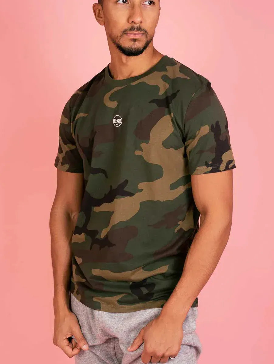 For days when you want to blend in but still rep the movement, this premium camouflage print tee keeps it classic with a minimalist embroidered Plant Faced badge front and centre. It's the perfect staple with a purpose - no slogans needed.
