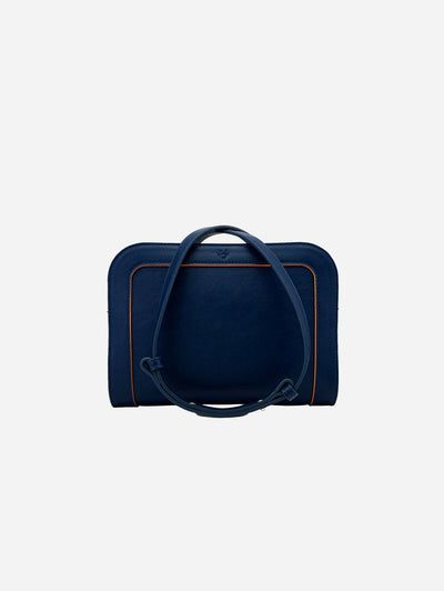 The Wilton vegan leather crossbody bag in navy has a compact shape for every day and a spacious interior for all your essentials. Each bag is handcrafted in an ethical supply chain using materials that provide a lower impact on the environment than traditional leather goods.