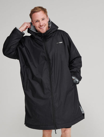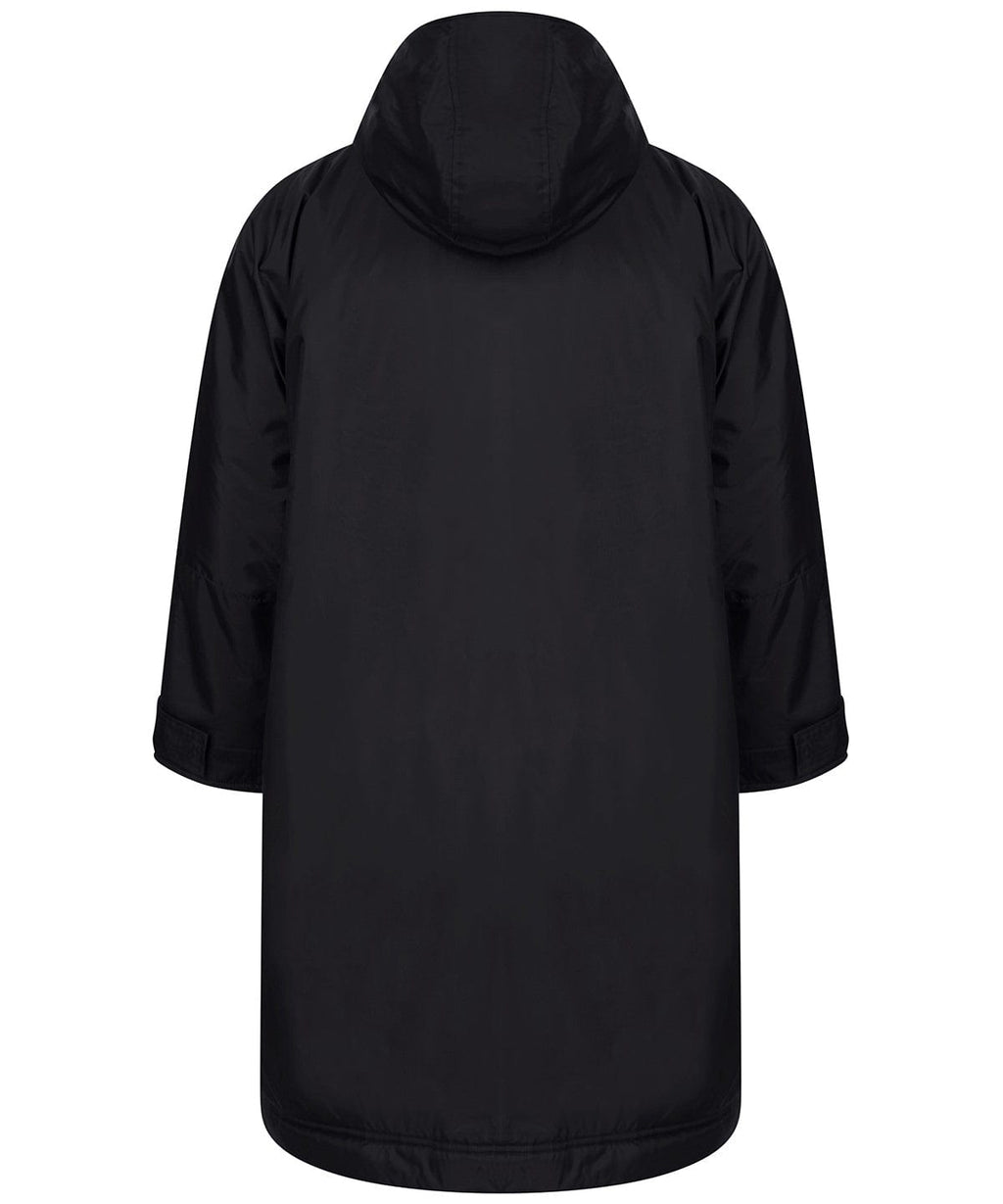 The ultimate team robe is made in a waterproof fabric with a cosy sherpa fleece lining and three-piece hood. One size fits all, the roomy fit with double-ended full front zip allows wearers to keep warm and get changed underneath the robe. Perfect for wild swimming or wearing on team sidelines. Zipped pockets with fleece lining keep hands warm with multiple inner pockets for keeping belongings safe.
