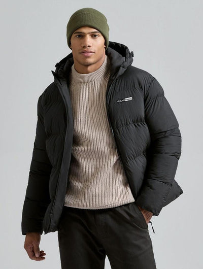 The Recycled TrailPeak padded jacket delivers superior protection and all-day comfort. Bonded zip detailing enhances wind and water resistance, while internal rib knit cuffs help retain warmth and block out cold draughts. Finished with a sleek matt exterior and large baffles and has our gorgeous and subtle VEGAN Happy logo to the front, just enough to spark conversations.