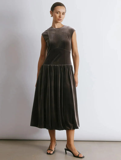 Turn heads in Velvet Puff Ball Midi Dress, where classic elegance meets contemporary flair. Crafted in luxurious stretch velvet in a rich mole shade, this midi dress features an elegant round neckline and chic cap sleeves for a polished finish. The playful bubble hem adds volume and movement, creating a flattering silhouette that exudes charm and confidence. Perfect for special occasions, this dress offers the ideal balance of comfort and standout style.