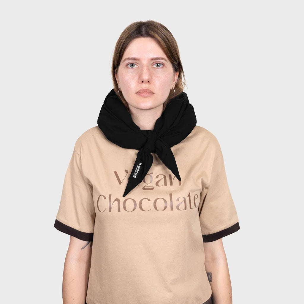Our capuche (yes, a stylish hood for those chilly days) is as light and fluffy as real down but 100% cruelty-free.