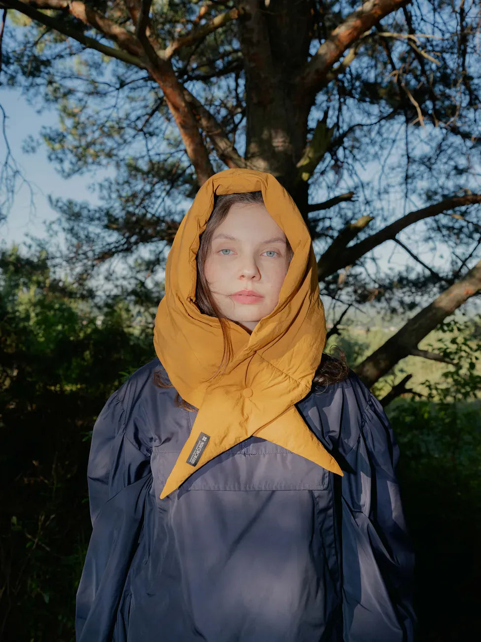 New Orchard's Capuche (yes, a stylish hood for those chilly days) is as light and fluffy as real down but 100% cruelty-free.