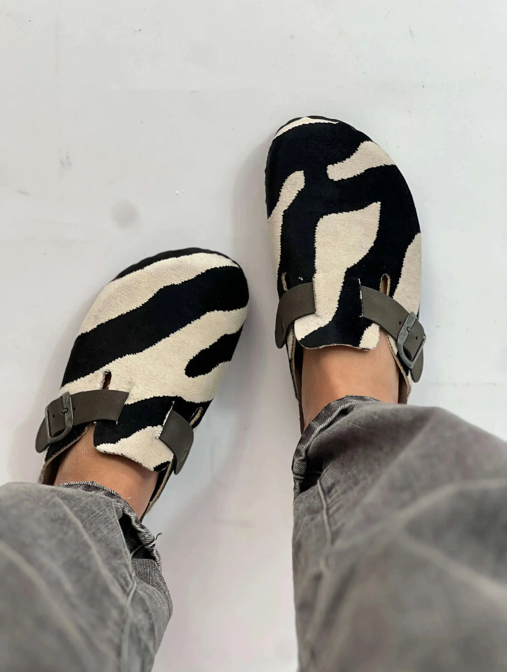 Perfectly Imperfect. We've reinvented clogs with this gorgeous zebra print. Super comfortable, unique, and original. Each shoe is different; no two are alike. This way, we make the most of the material, and there's virtually no waste, achieving "zero waste."